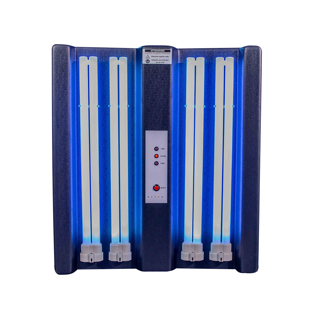 - Lamps: 3 Philips NB/UVB lamps and 1 Philips UVA/PUVA lamp of 36W each, for a total power of 144W
