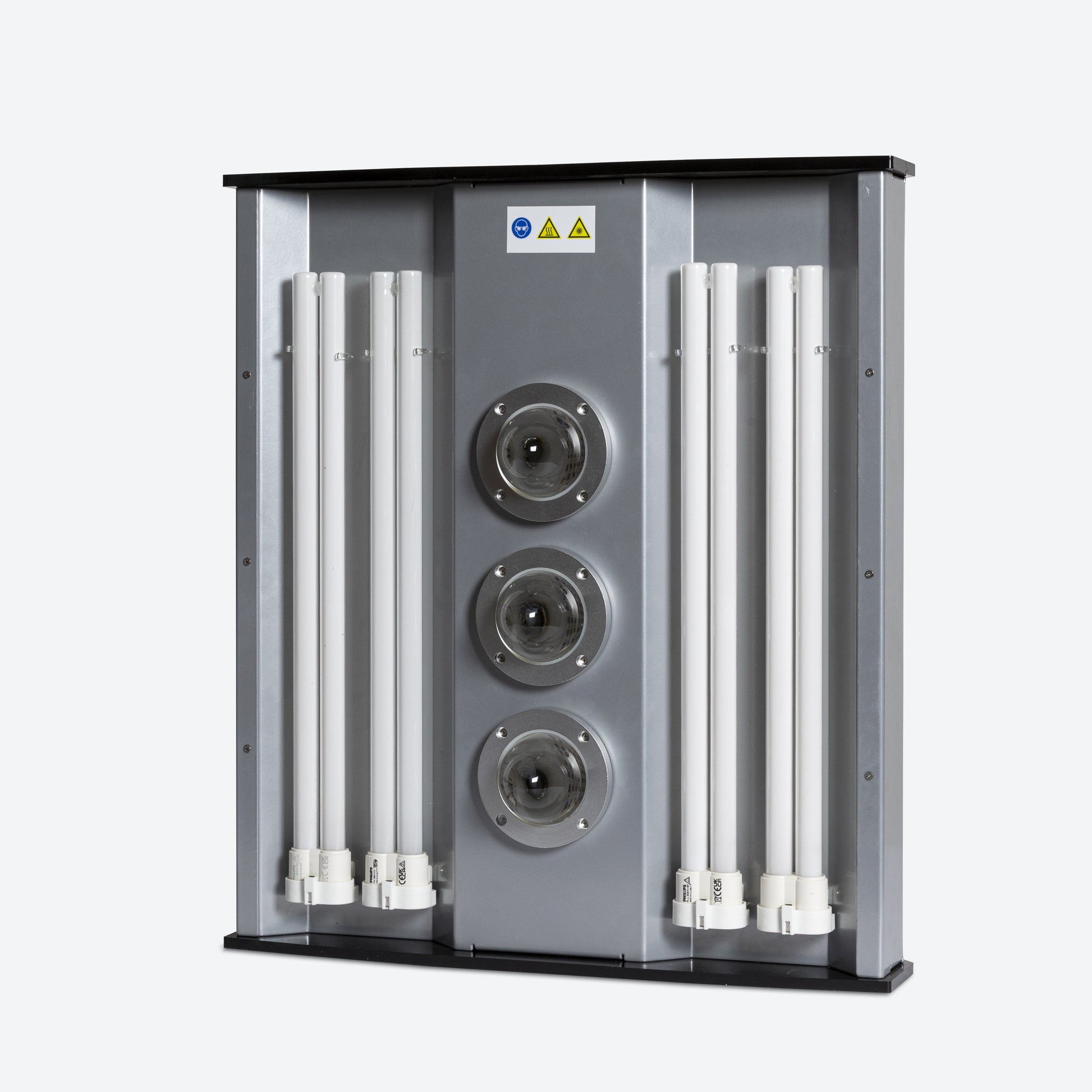 - Lamp Configuration: 3 Philips NB/UVB bulbs + 1 Philips UVA/PUVA bulb of 36W each for phototherapy; 3 Chip On Board (COB) for photobiomodulation, optimized to maximize irradiance